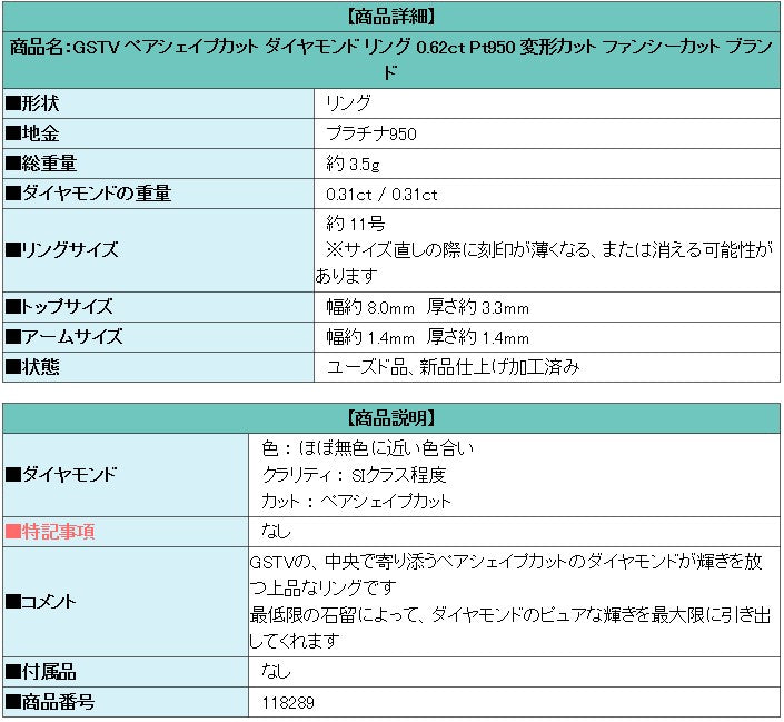 商品名:GSTV ペアシェイプカット ダイヤモンド リング 0.62ct Pt950 変形カット ファンシーカット ブランド