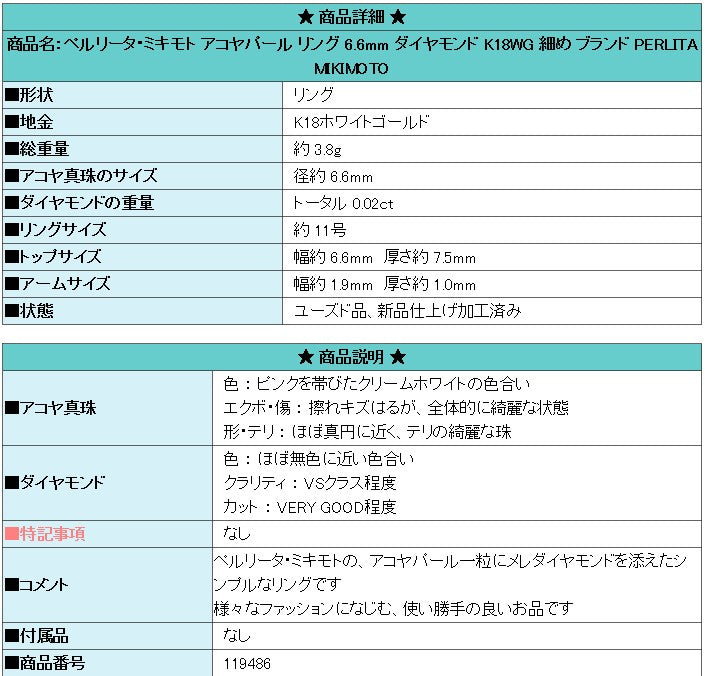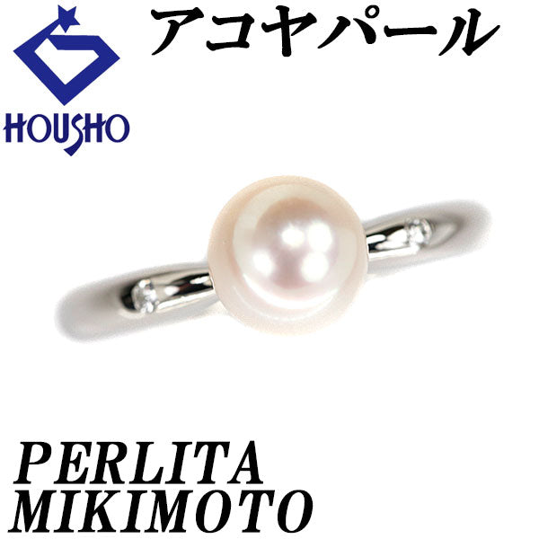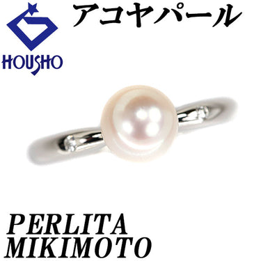 商品名:ペルリータ・ミキモト アコヤパール リング 6.6mm ダイヤモンド K18WG 細め ブランド PERLITA MIKIMOTO