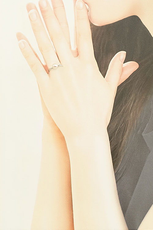 ペルリータ・ミキモトの、アコヤパール一粒にメレダイヤモンドを添えたシンプルなリングです