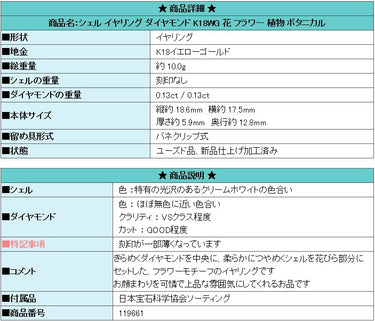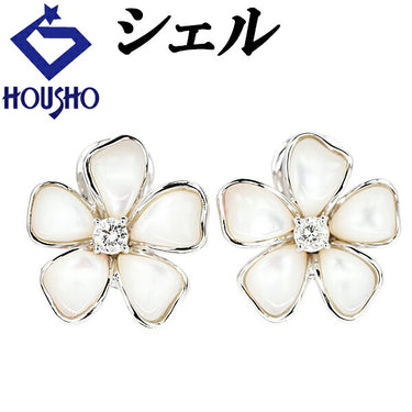 商品名:シェル イヤリング ダイヤモンド K18WG 花 フラワー 植物 ボタニカル