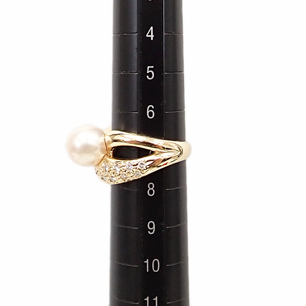 タサキ 田崎真珠 アコヤ真珠 リング ダイヤモンド K18イエローゴールド TASAKI 透かし【中古】【900607】