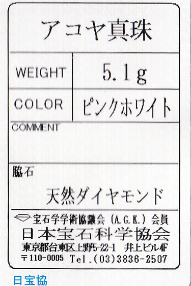 アコヤ真珠 色:ピンクを帯びたクリームホワイトの色合い