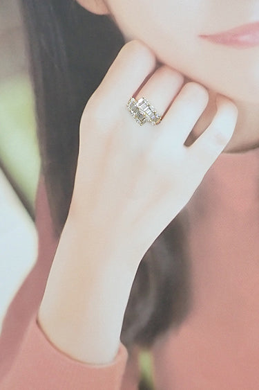 コメント 2種類のカットのダイヤモンドを贅沢に使用した、ラグジュアリーなリングです。マーキスカットのみずみずしい輝きと、テーパーカットのすっきりとしたきらめきが上品にお手元を飾ってくれます。