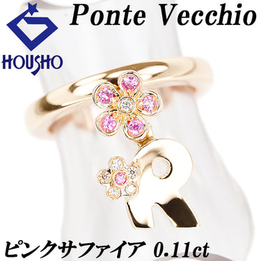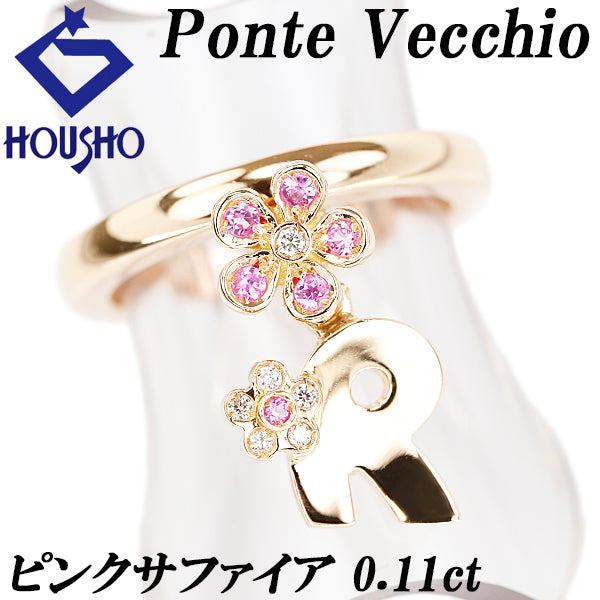 ポンテヴェキオ サファイア リング ダイヤモンド K18ピンクゴールド Ponte Vecchio イニシャル R アルファベット 頭文字 英語 花 フラワー 植物 ボタニカル 揺れる【中古】【903718】