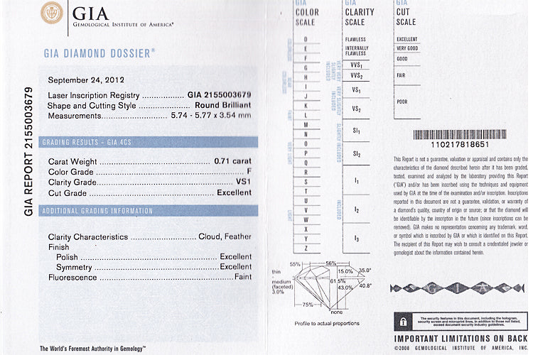 ※ガードルにGIA鑑定書と同一のナンバー刻印があります。石の重量は鑑定書に記載されています。