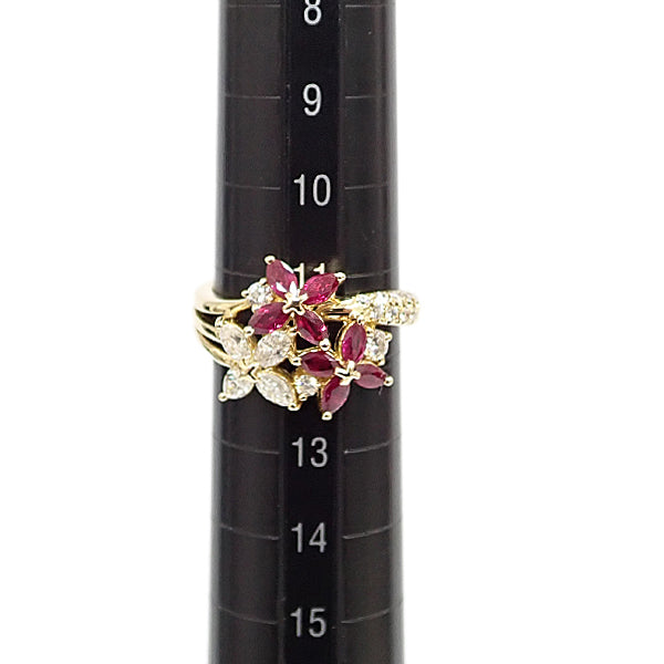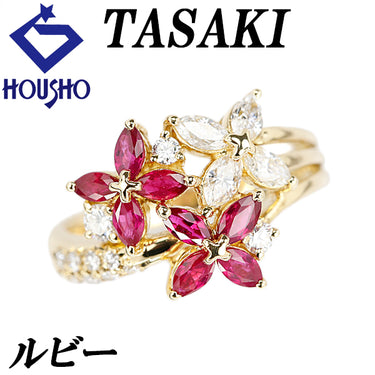 タサキ 田崎真珠 ルビー リング ダイヤモンド K18イエローゴールド TASAKI 花 フラワー 植物 ボタニカル【中古】【903926】