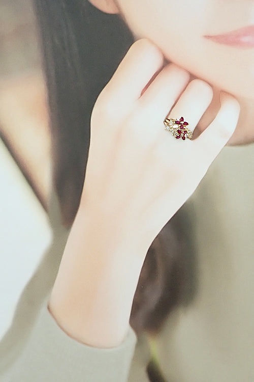 商品名 タサキ 田崎真珠 ルビー リング ダイヤモンド K18イエローゴールド TASAKI 花 フラワー 植物 ボタニカル
