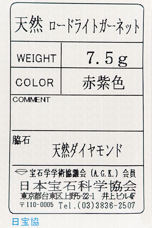 ロードライトガーネット 色:やや深いパープリッシュピンクの色合い