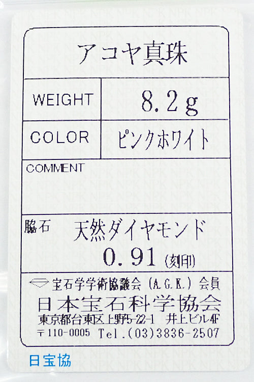 アコヤ真珠 色:ピンクを帯びたクリームホワイトの色合い