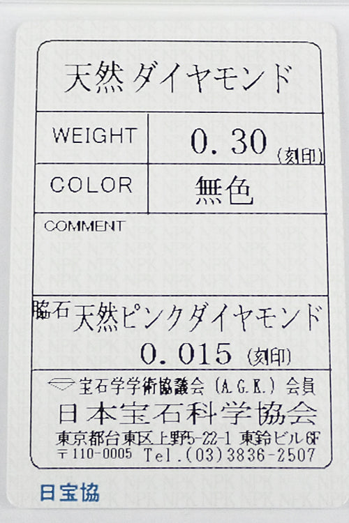 ダイヤモンド 色:ほぼ無色に近い色合い