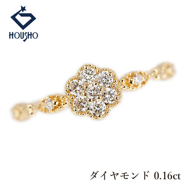 商品名 ダイヤモンド リング K18イエローゴールド 花 フラワー 植物 ボタニカル ミル打ち ミルグレイン