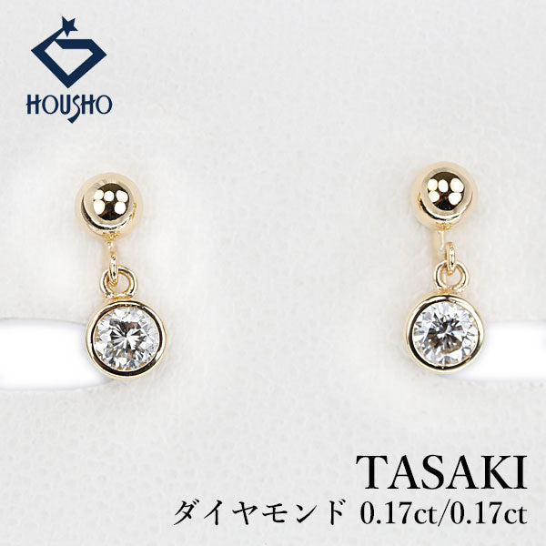 商品名 タサキ 田崎真珠 ダイヤモンド イヤリング K18イエローゴールド TASAKI 揺れる 一粒石 ベゼル
