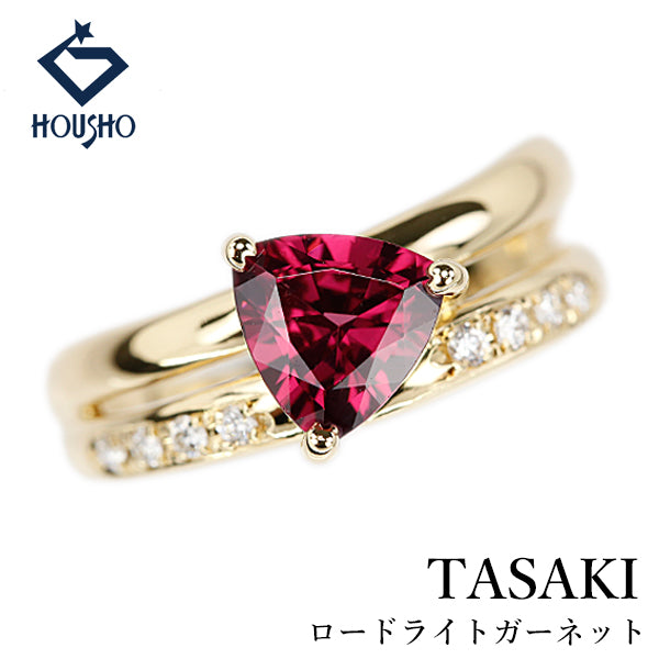 商品名 タサキ 田崎真珠 ロードライトガーネット リング ダイヤモンド K18イエローゴールド TASAKI トリリアント 重ね付け風 2連風