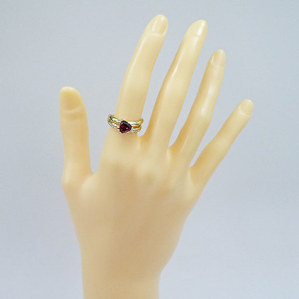 タサキ 田崎真珠 ロードライトガーネット リング ダイヤモンド K18イエローゴールド TASAKI トリリアント 重ね付け風 2連風【中古】【905072】
