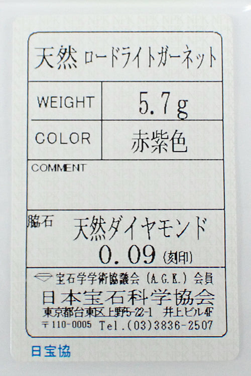 ロードライトガーネットの重量 刻印なし