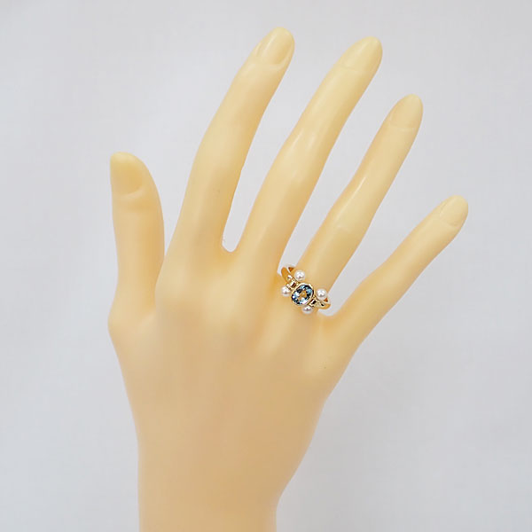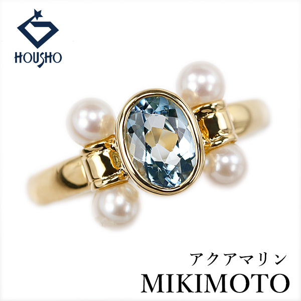 ミキモト ペルリータミキモト アクアマリン リング アコヤ真珠 K18イエローゴールド MIKIMOTO【中古】【905095】