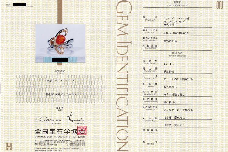 付属品 全国宝石学協会鑑別書