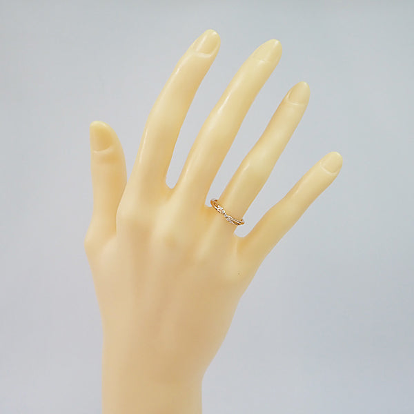 ヨンドシー ダイヤモンド リング K18ピンクゴールド 4℃ ウェーブ 細め 華奢【中古】【905186】