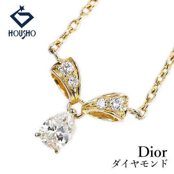 クリスチャンディオール ダイヤモンド ネックレス ダイヤモンド K18イエローゴールド Christian Dior リボン ペアシェイプカット 変形カット ファンシーカット【中古】【905295】