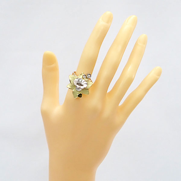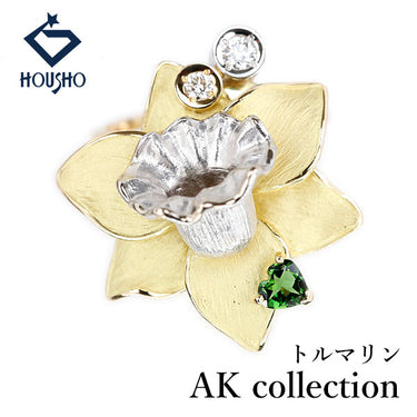 商品名 AKコレクション トルマリン リング ダイヤモンド K18イエローゴールド Pt900 AK collection 花 フラワー 植物 ボタニカル ハート 梨地 マット ツヤ消し
