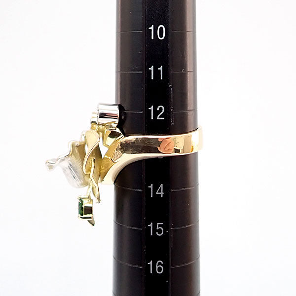 AKコレクション トルマリン リング ダイヤモンド K18イエローゴールド Pt900 AK collection 花 フラワー 植物 ボタニカル ハート 梨地 マット ツヤ消し【中古】【905534】