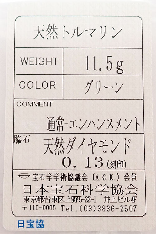 トルマリン 色:濃く落ち着いたグリーンの色合い