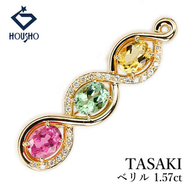 商品名 タサキ 田崎真珠 ベリル ブローチ ダイヤモンド トルマリン K18イエローゴールド TASAKI 2way ペンダントトップ