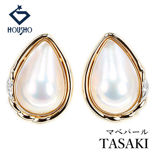 商品名 タサキ 田崎真珠 マベパール イヤリング ダイヤモンド K18イエローゴールド Pt900 TASAKI ドロップ 雫 しずく 涙 コンビ