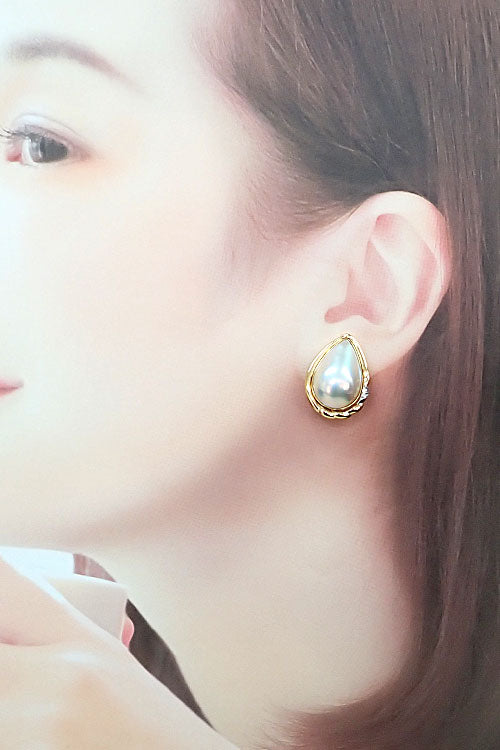 タサキ 田崎真珠 マベパール イヤリング ダイヤモンド K18イエローゴールド Pt900 TASAKI ドロップ 雫 しずく 涙 コンビ【中古】【905660】