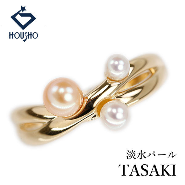 商品名 タサキ 田崎真珠 淡水真珠 リング K18イエローゴールド TASAKI ベビーパール 重ね付け風 ウェーブ ダブル