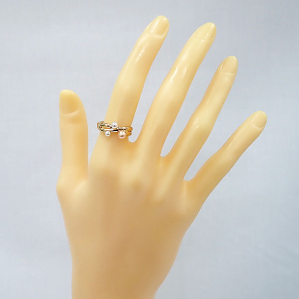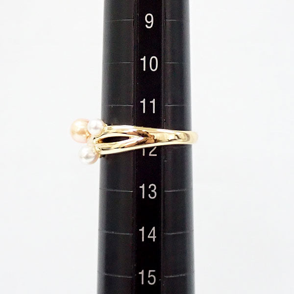 タサキ 田崎真珠 淡水真珠 リング K18イエローゴールド TASAKI ベビーパール 重ね付け風 ウェーブ ダブル【中古】【906503】