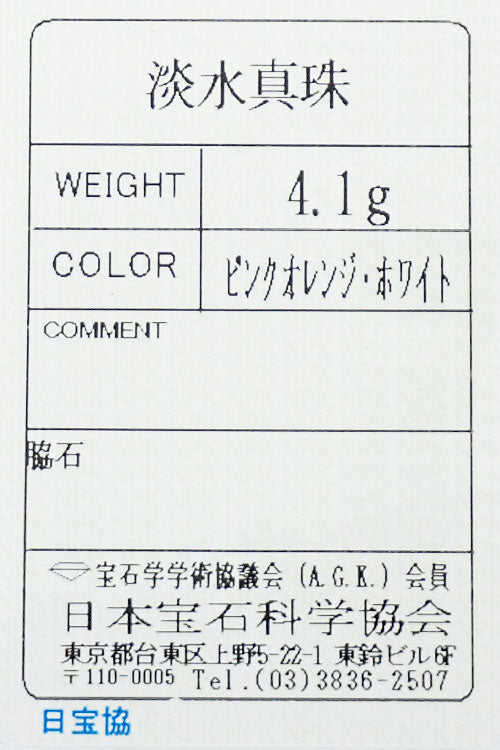 淡水真珠 色:クリームオレンジ/ピンクを帯びたクリームホワイトの色合い